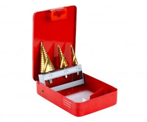 - sada stupňovitých vrták z kvalitní HSS oceli DIN 1412C s TiN vrstvou