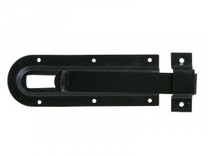 Kovová zástrč s plochým třmenem. Lze využít na uzavírání a zajišťování dveří, dvířek, šuplíků.